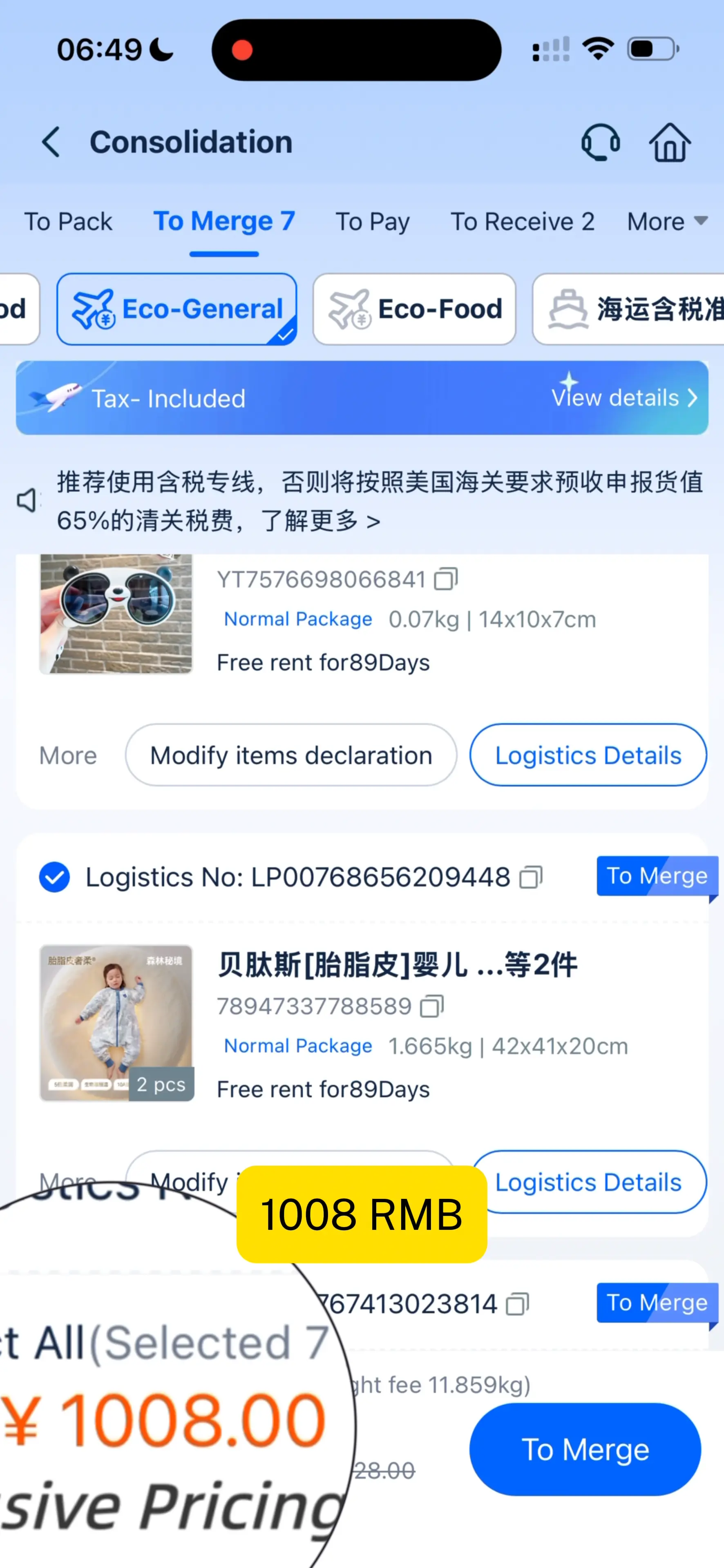 By doing this, CAINIAO recalculates your shipping weight after removing all that excess packaging. In my case, this step reduced the fee by another ¥357 RMB (about $50 USD)!