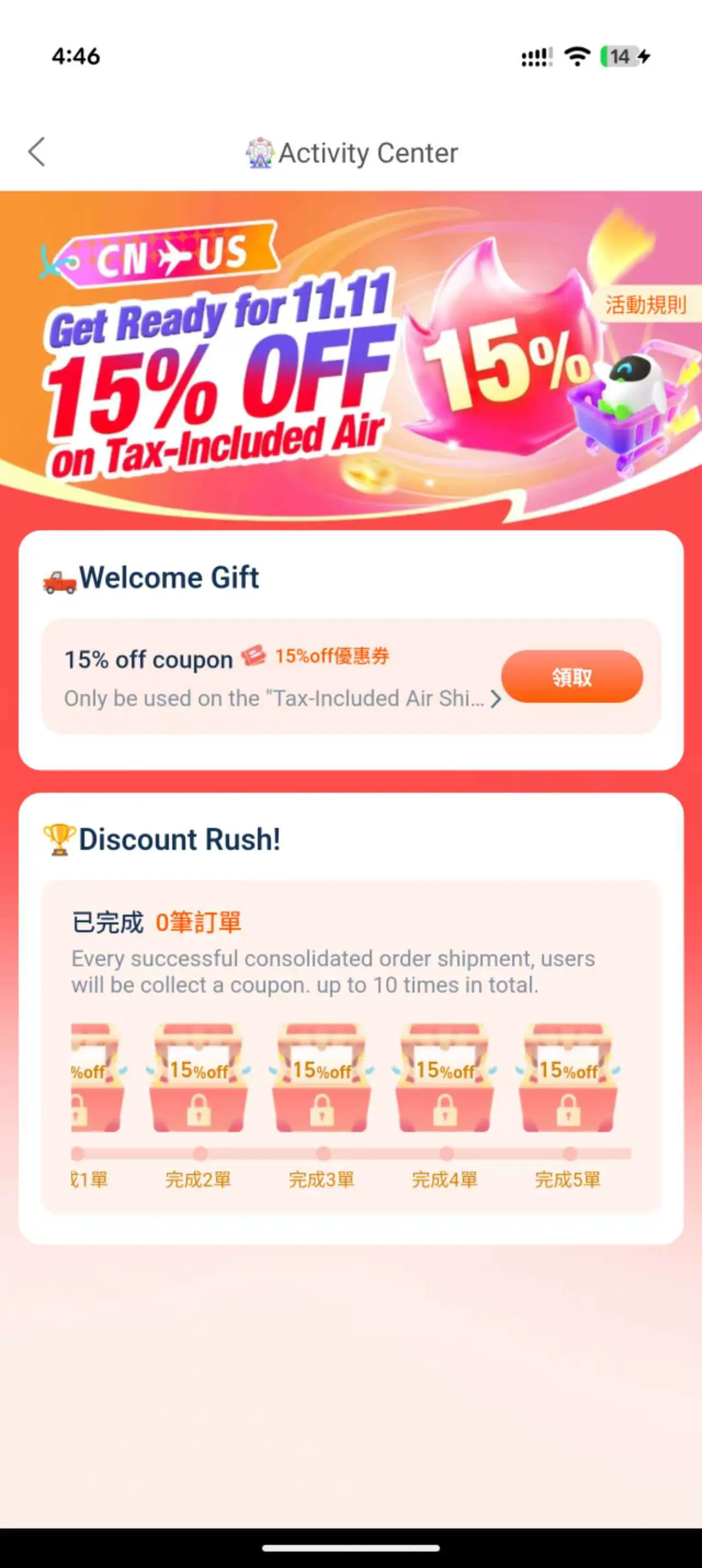 CAINIAO often offers monthly promotions, such as a 15% OFF coupon on the homepage. You can clip it before checkout.